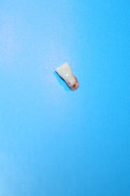 We have been messing around with that thing for a couple weeks now. Tonight it was finally on its last stitch. She had my big mirror out looking at it. I told her to look in the mirror and she could watch me as I pulled it out. With a look of frantic in her eye, she said, will this hurt. I said yeah, but just for a minute. So she made Lauren come over and hold her hand, as I pulled the tooth out. As I pulled it out, she squealed, but only for a second, then the tooth was out and she was SO excited to see it. We cleaned it up and cleaned her up. Wrapped it up, and tucked it underneath her pillow for the tooth fairy.